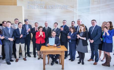 So much traction, in fact, that the Wisconsin Assembly passed the bill unanimously and the Wisconsin Senate passed it with a large bipartisan majority: 23-9. Shortly thereafter, Governor Walker signed the bill into law before a large audience of nuclear advocates at the University of Wisconsin.
